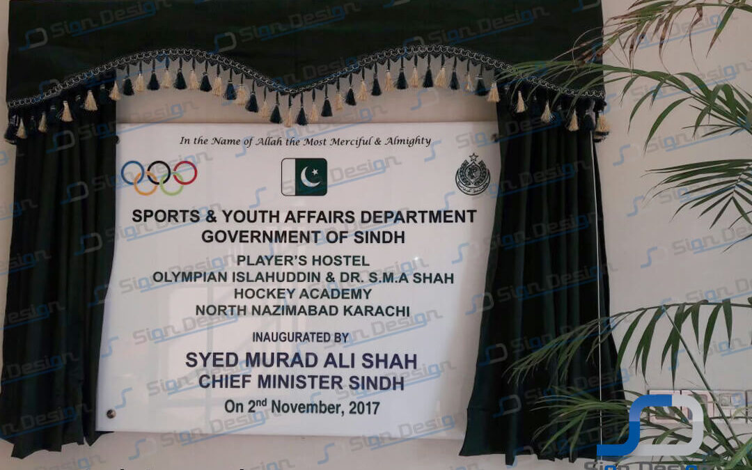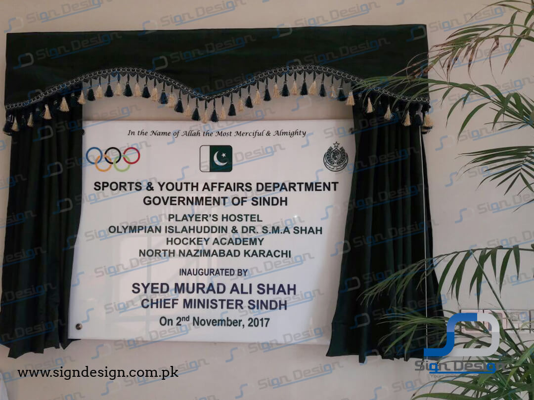 inauguration plaque acrylic wallmount curtain